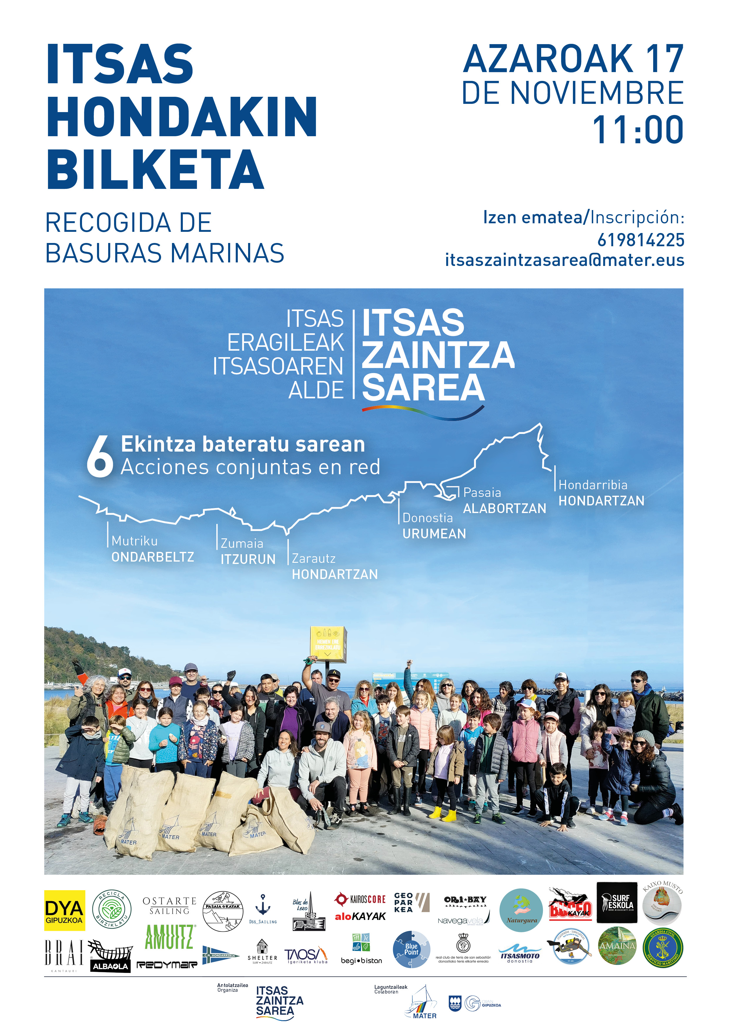 Azaroaren 17an Gipuzkoako kostalde osoan zehar 6 itsas hondakinen bilketa egingo dira aldi berean